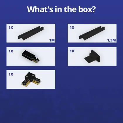 Bright Choice Rail Set 1-Fase L 1 x 1,5 Meter Zwart | incl. Eindkap, Voedingsconnector en L -Verbindingsstuk