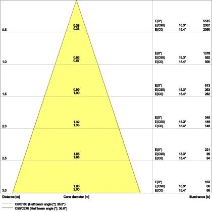 De gradenbundel geeft informatie over hoe breed het licht wordt uitgestraald. Dit zit tussen de 0 en 360 graden (D). Hoe kleiner de hoek, hoe specifieker de lichtbundel is. Over het algemeen is een smalle gradenbundel perfect voor sfeer- of accentverlichting, terwijl een brede gradenbundel ideaal is om grote oppervlaktes te verlichten.